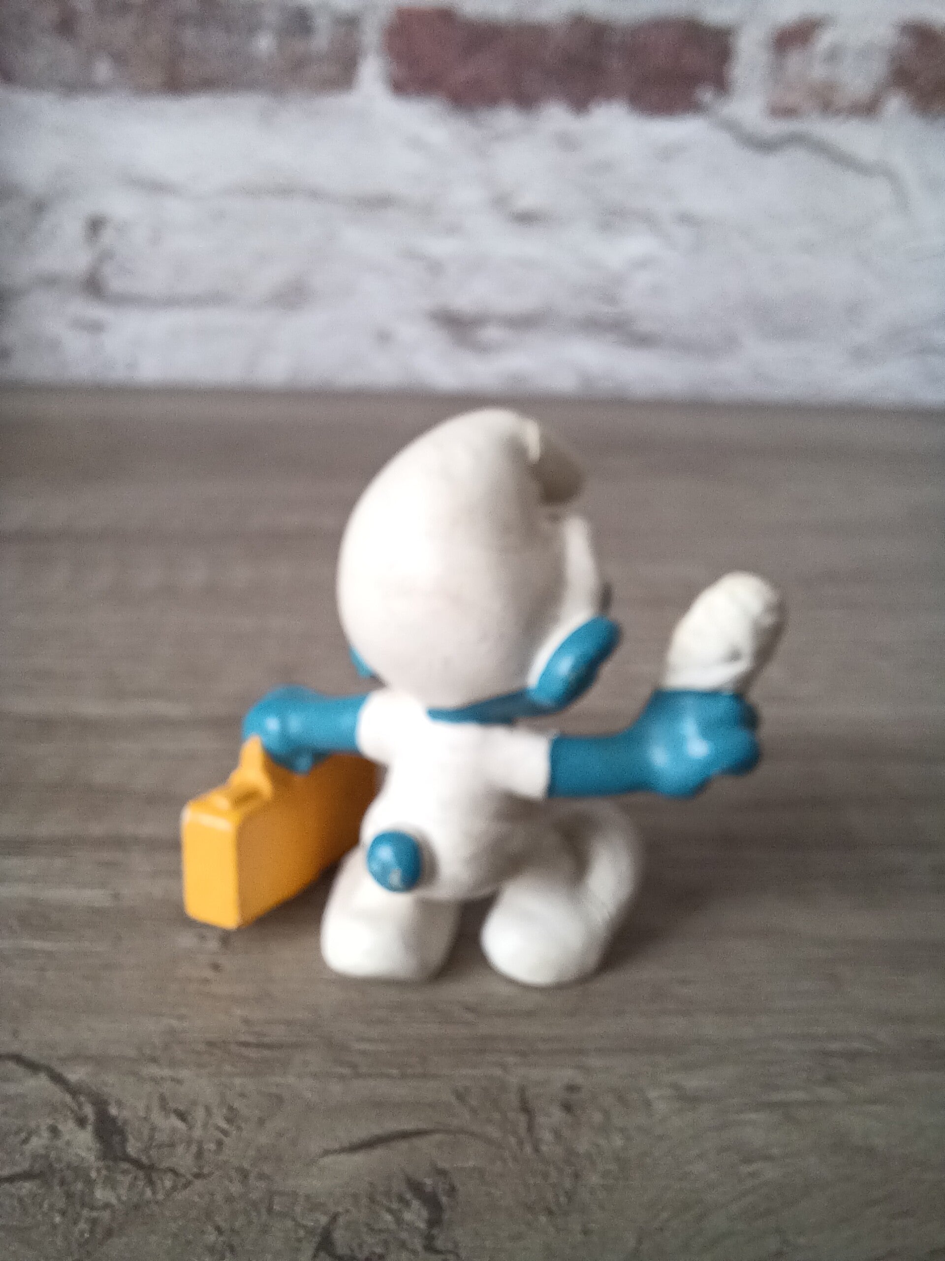 figurine schtroumpf , valise jaune , schleich , occasion