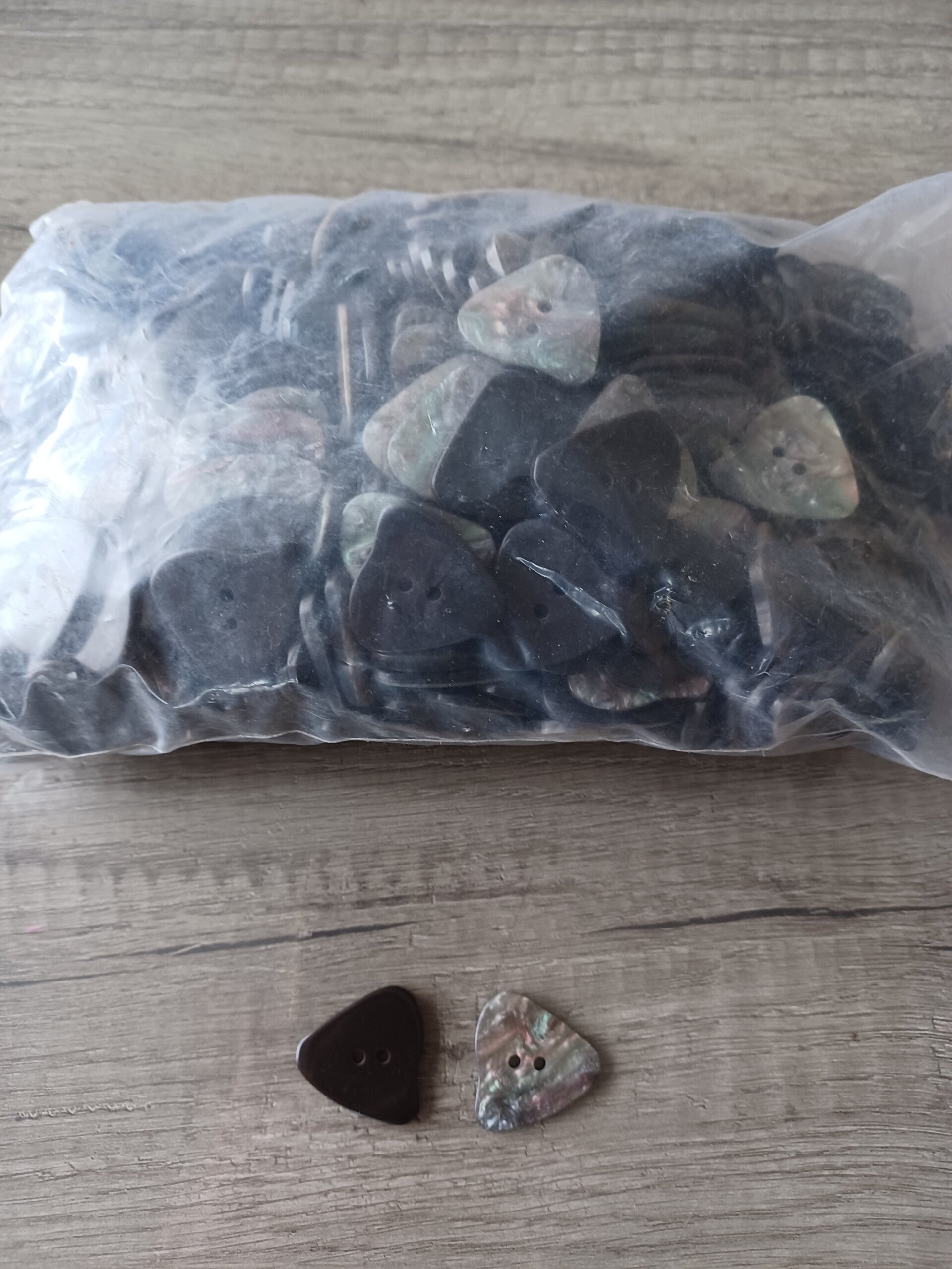 450 boutons plastiques noir nacre , 2,5 cm , neuf