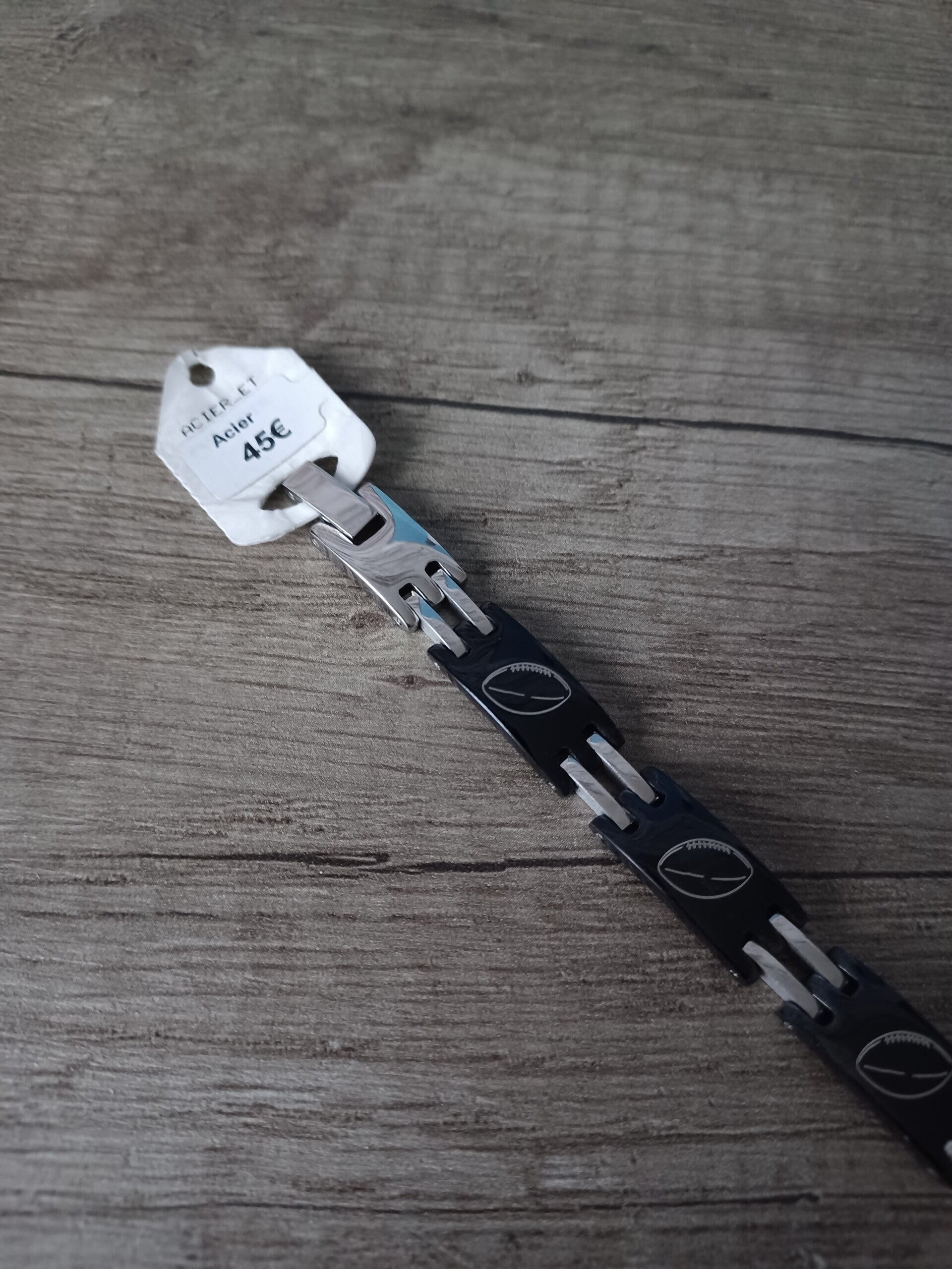 bracelet acier 21 cm , ballon de rugby , neuf
